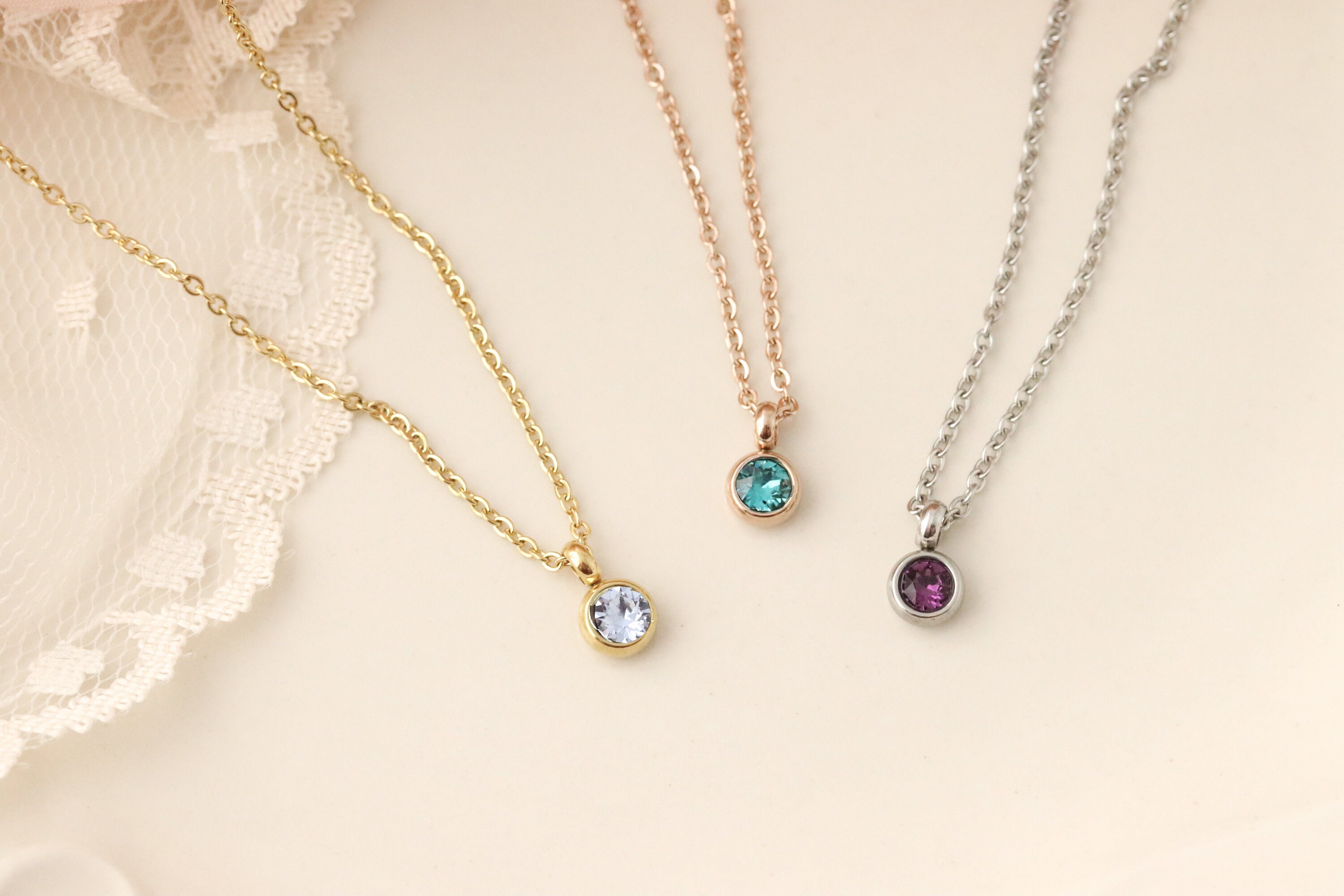 - Tiny birthstone necklace shop