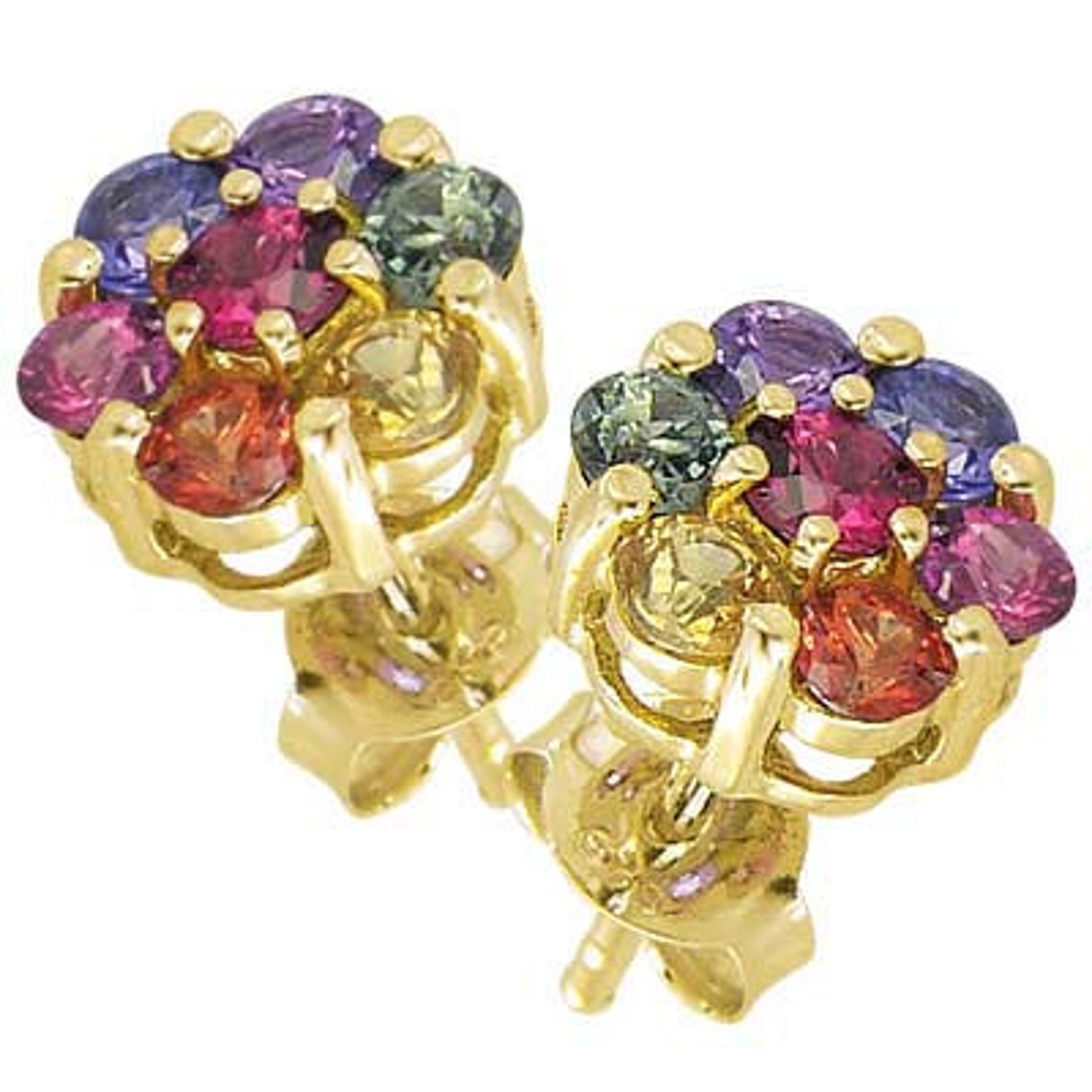 Rainbow sapphire earrings clearance, Multicolor Rainbow Sapphire Earrings Flower Cluster 18K Yellow | Etsy clearance