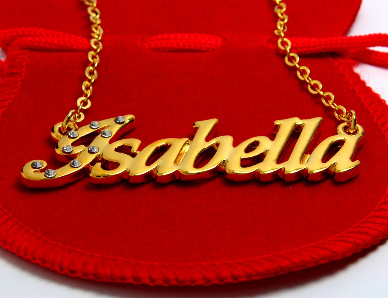 Isabella necklace gold clearance, Name Necklace Isabella Gold Plated 18ct Personalised - Etsy clearance