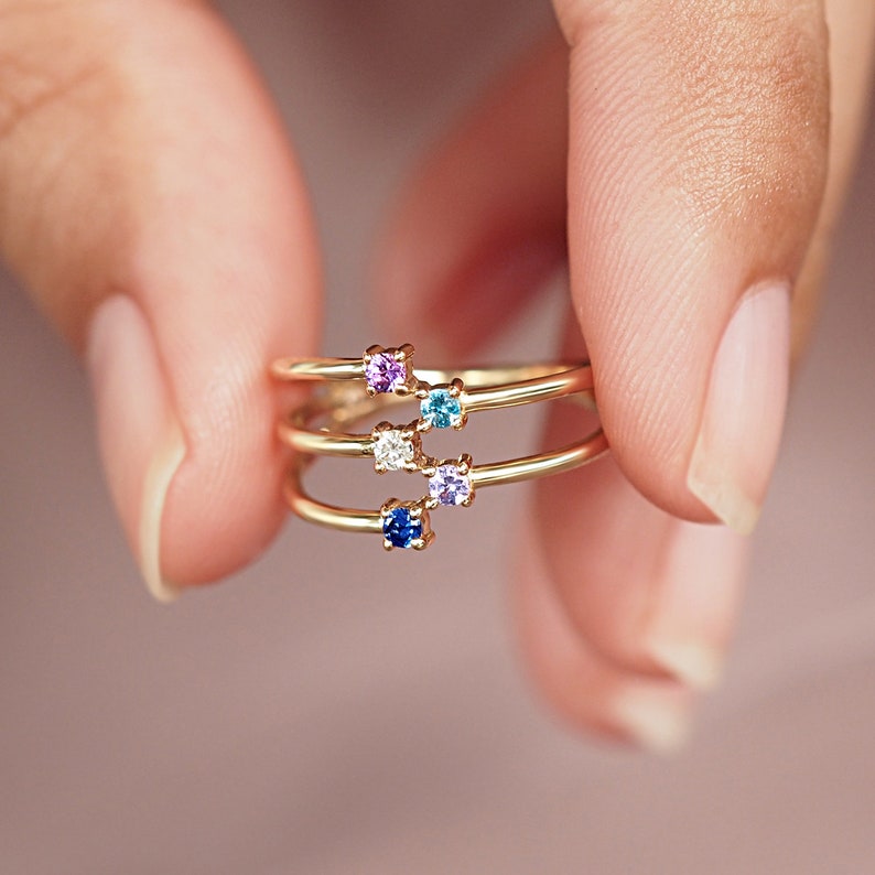 Mothers ring 5 stones white gold clearance, Solid Gold 5 Stone Mothers Ring Christmas Gift for Mom - Etsy clearance