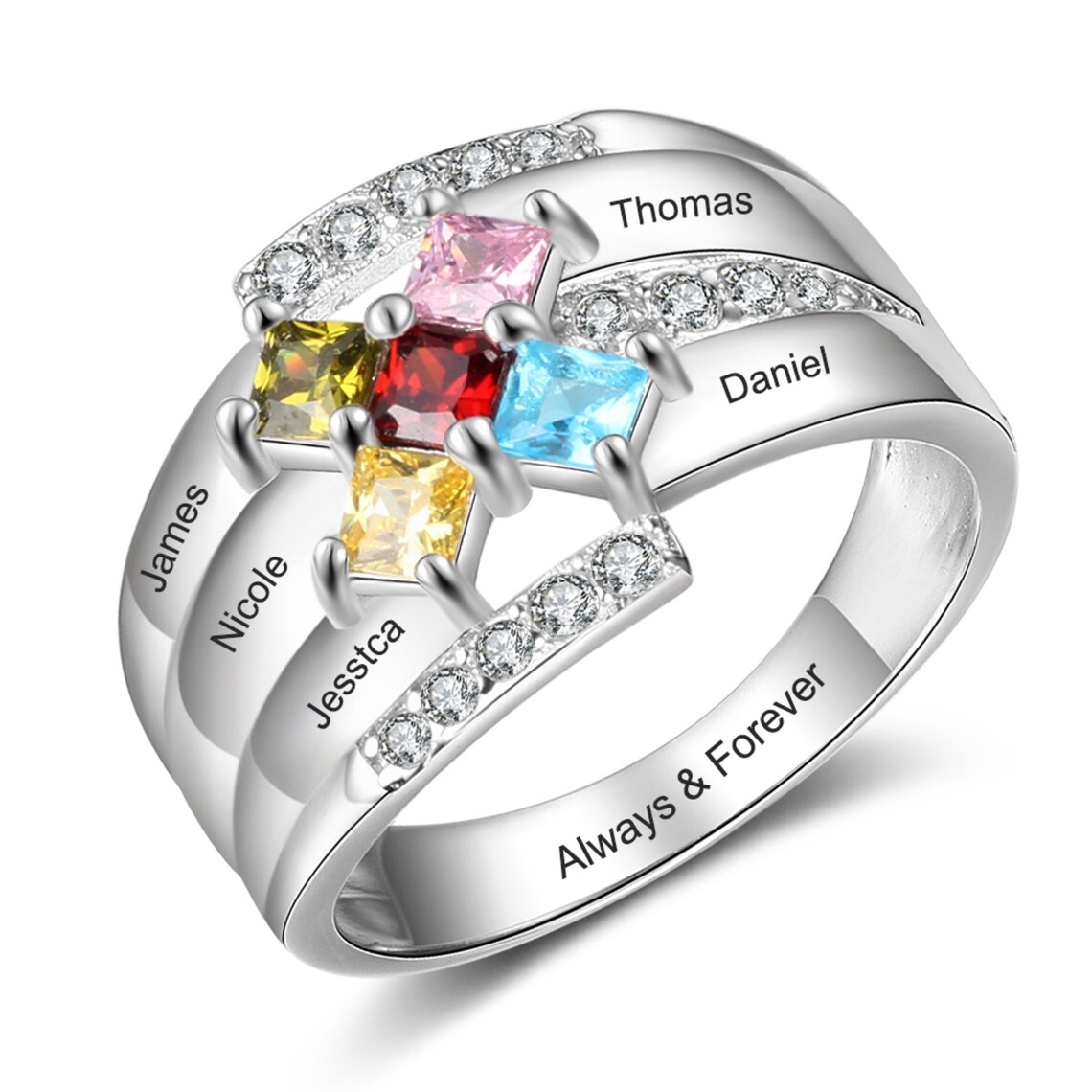 - Mothers ring 5 stones white gold free shipping