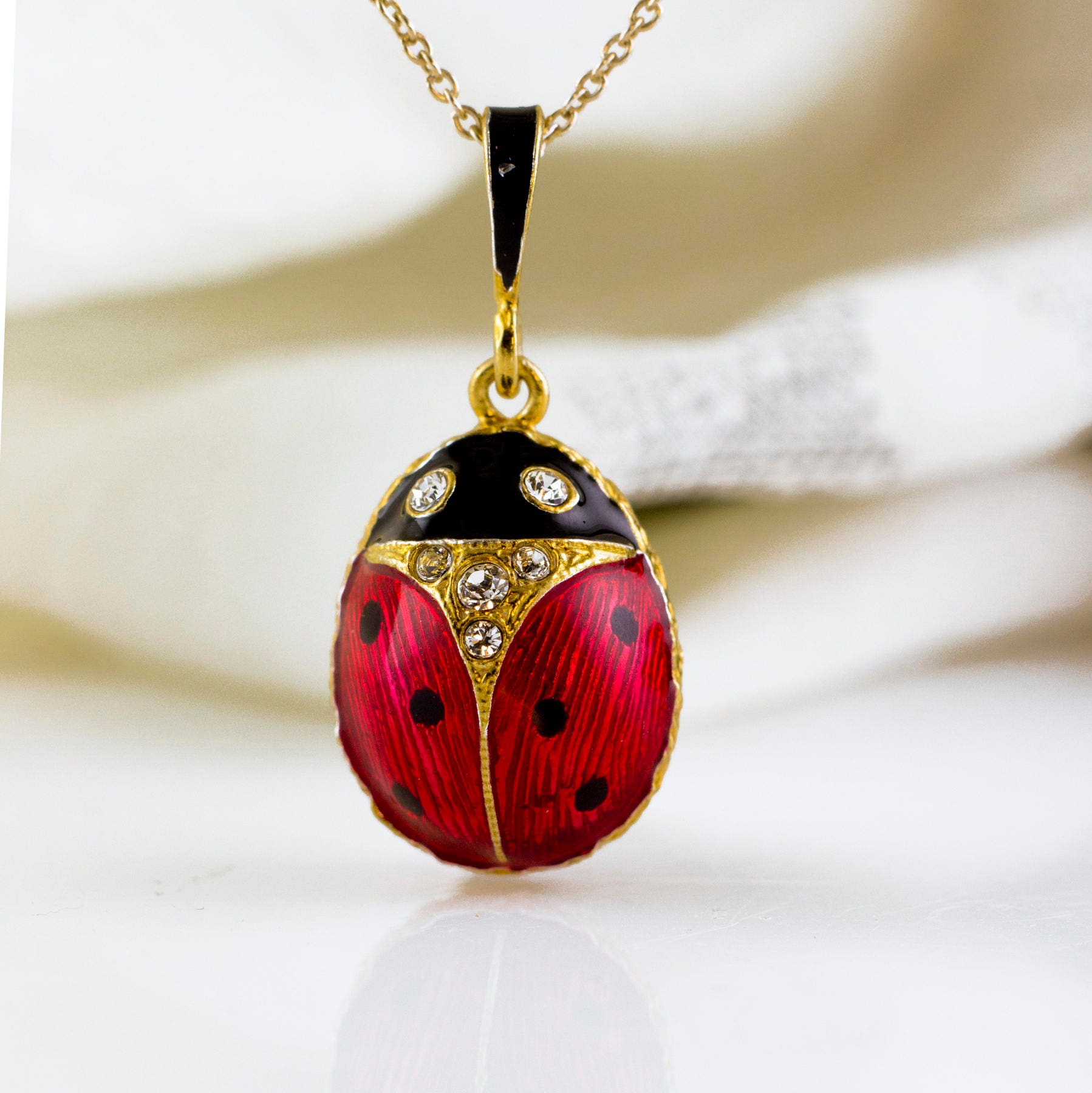 Ladybug necklace clearance, Ladybug Enamel Jewelry Necklace Sterling Silver Enamel Egg clearance
