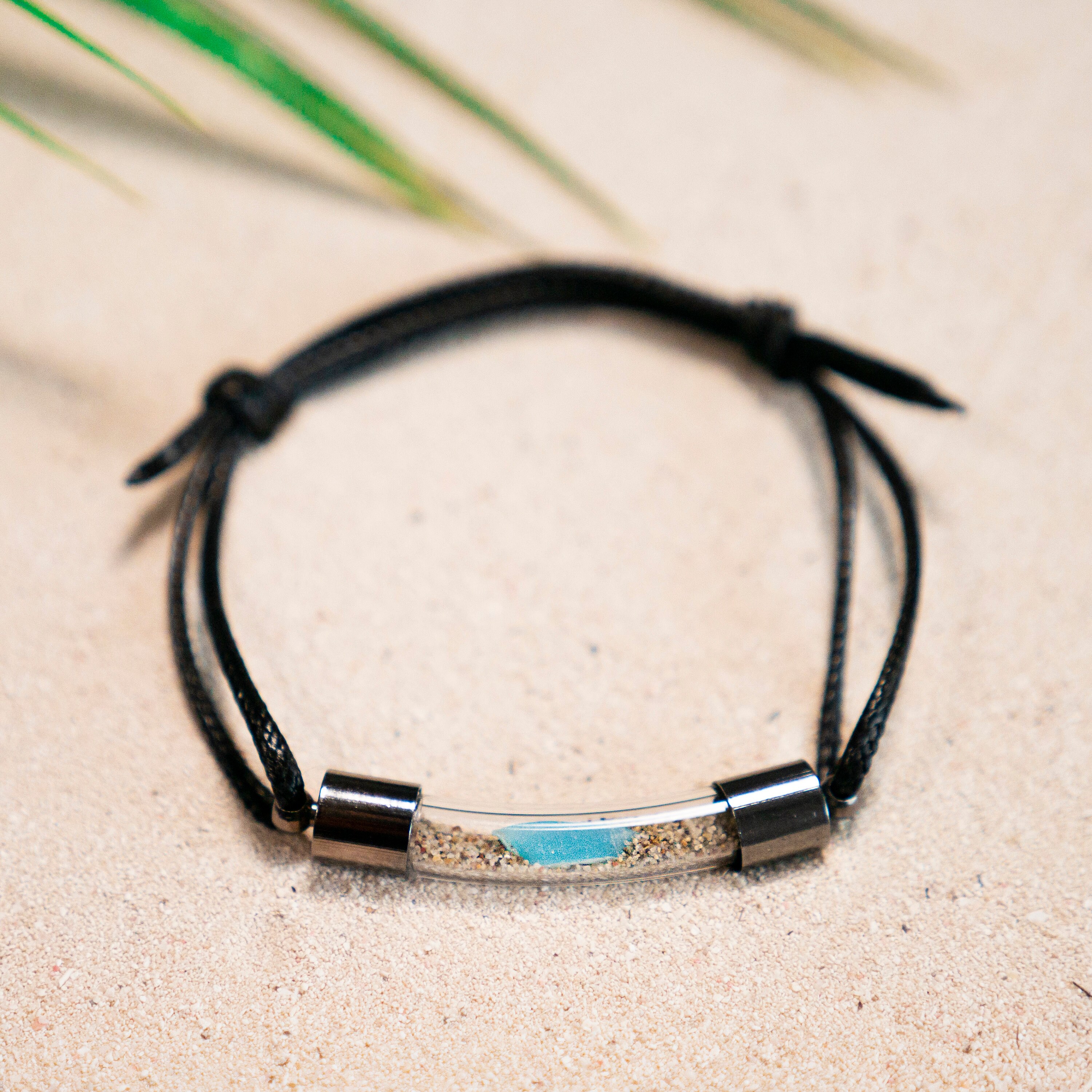 Bracelets from plastic in the ocean clearance, Black Laced Bracelet With Ocean Plastic Waste and Sand From Beaches Around the World in Curved clearance