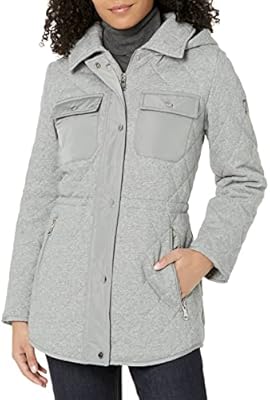 Grey car coat womens clearance, Vince Camuto Women's Hooded Diamond Quilt Anorak Car Coat, Melange Grey, Large : Amazon.sg: Fashion clearance