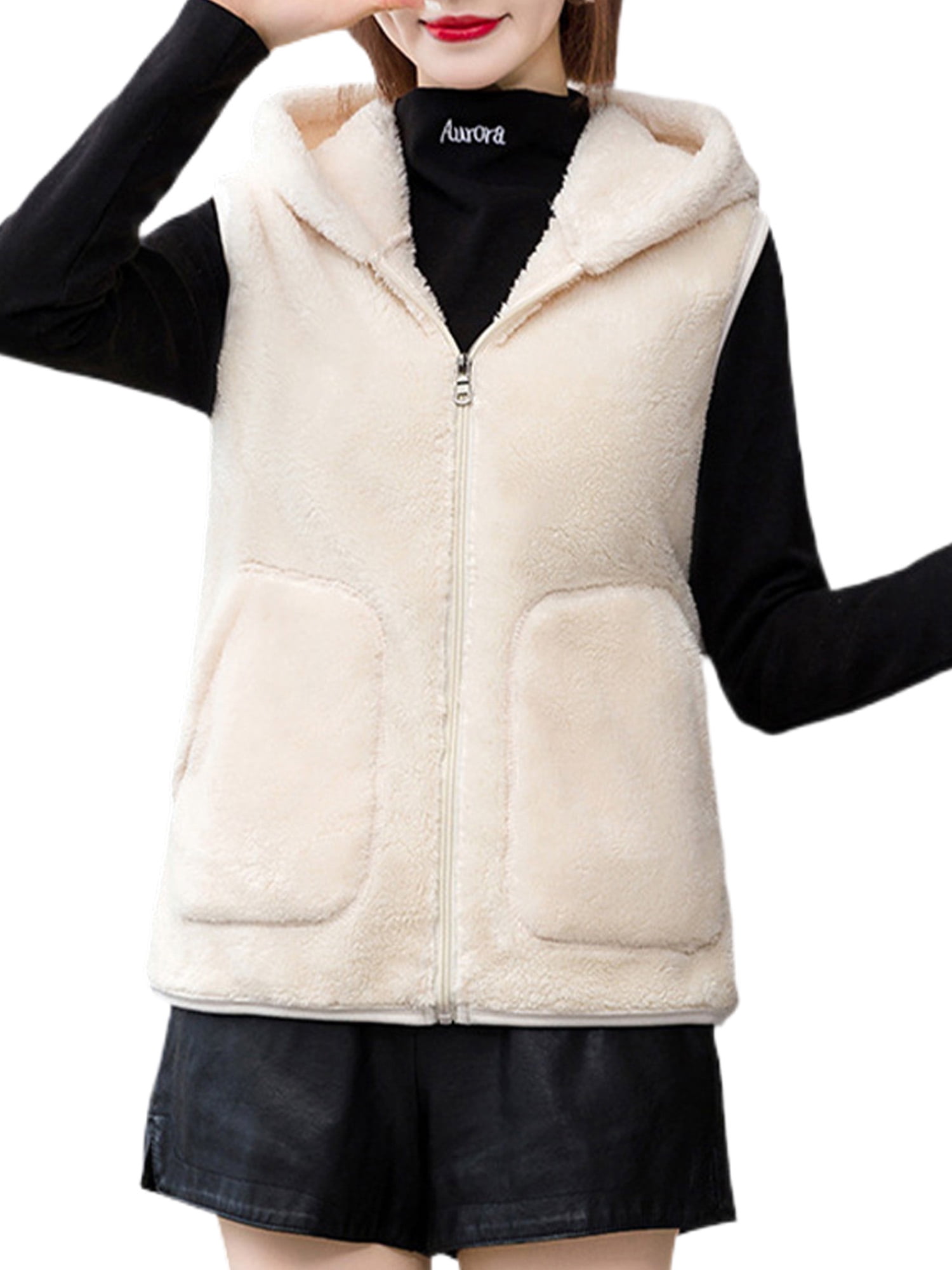 Cream color fleece jacket clearance, Paille Women Waistcoat Fuzzy Fleece Jacket Vest V Neck Coat With Pockets Sleeveless Outwear Fall Cream Color 2XL - Walmart.com clearance