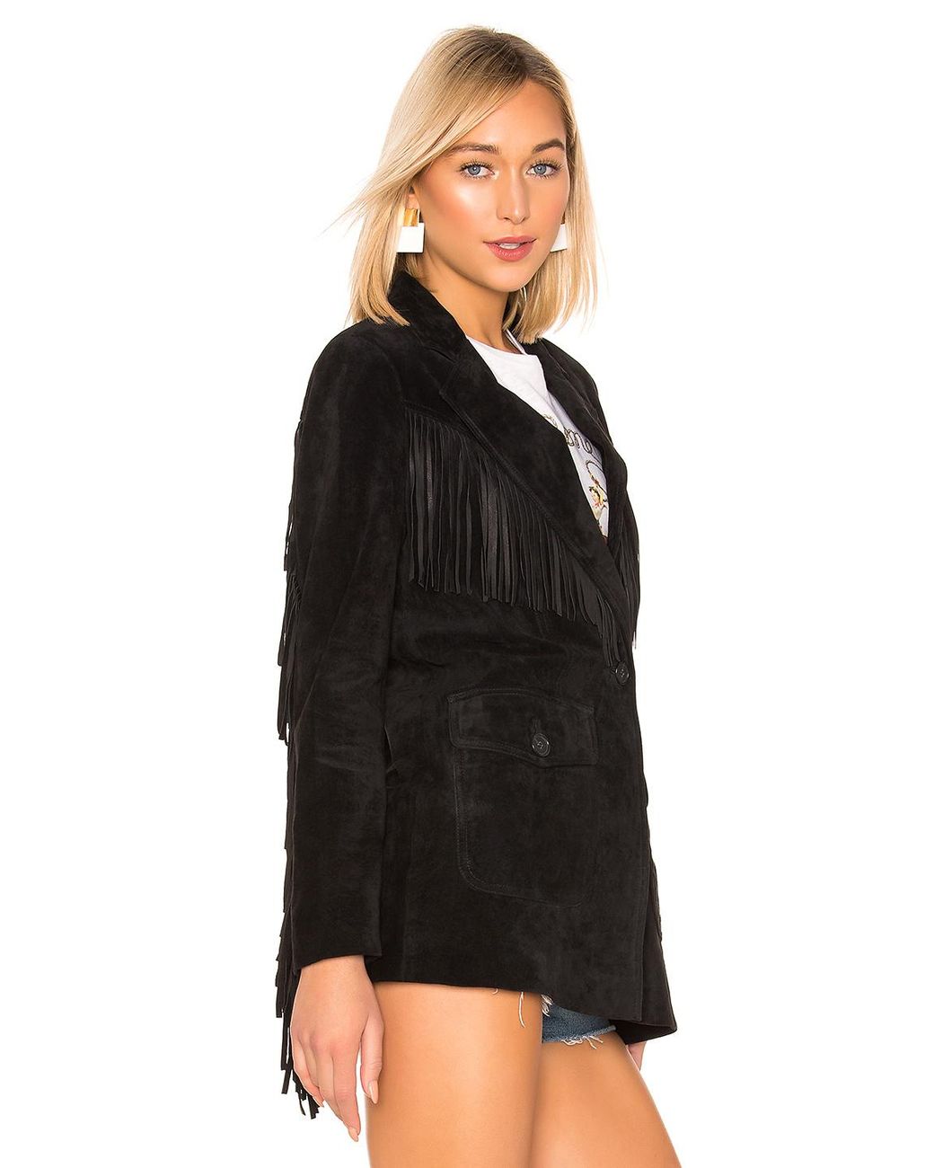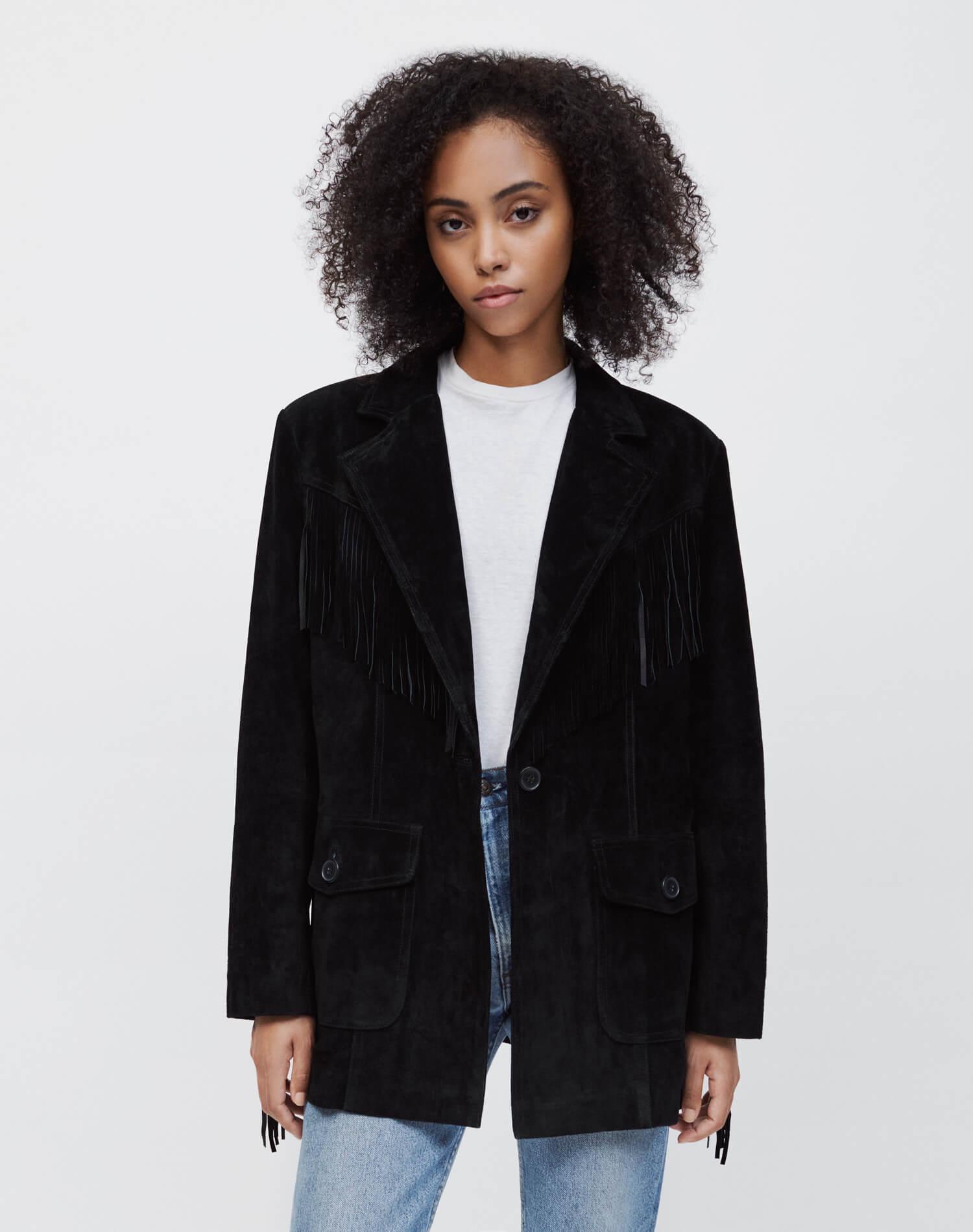 Redone fringe jacket clearance, RE/DONE Suede Fringe Blazer in Black | Lyst clearance
