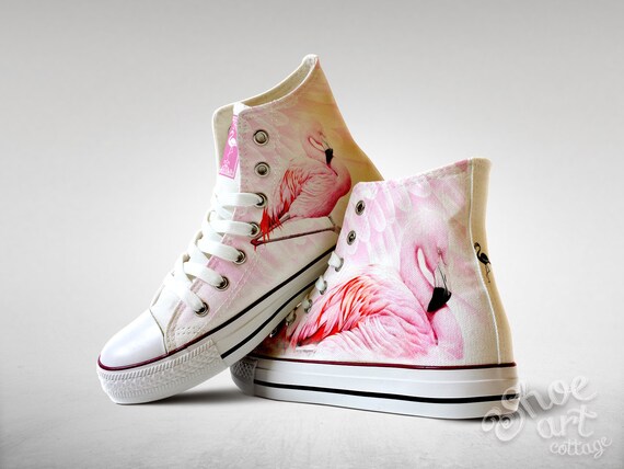 Pink flamingo shoes clearance, White sneakers, Flamingo pattern clearance