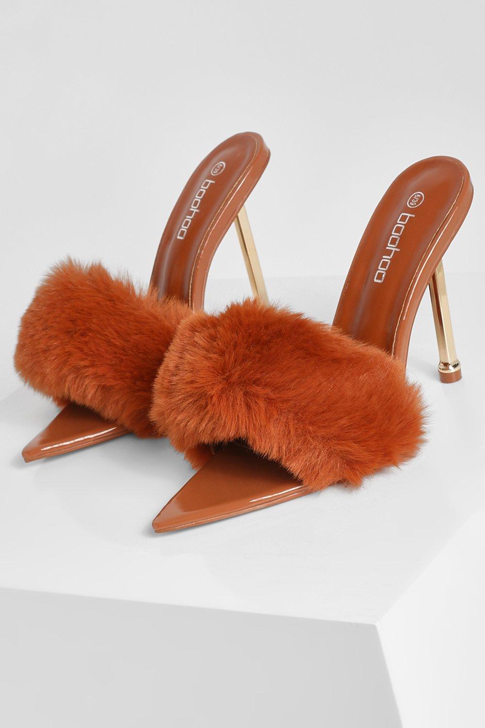Fur mules heels clearance