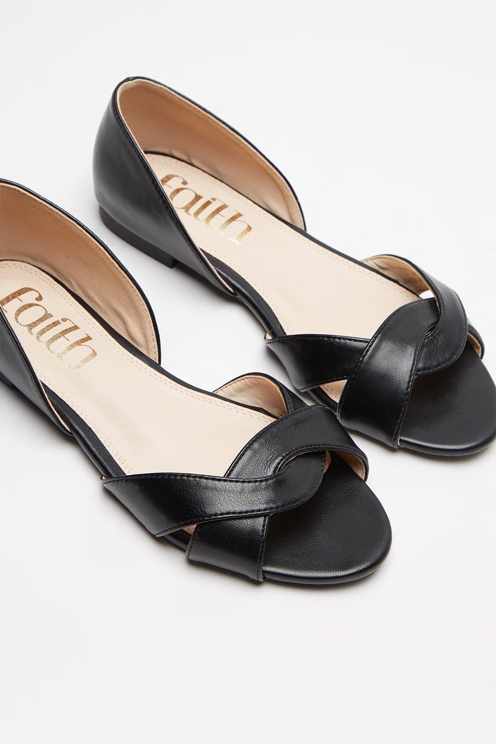 Black open toe flats clearance