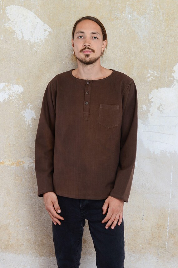 Brown henley shirt clearance
