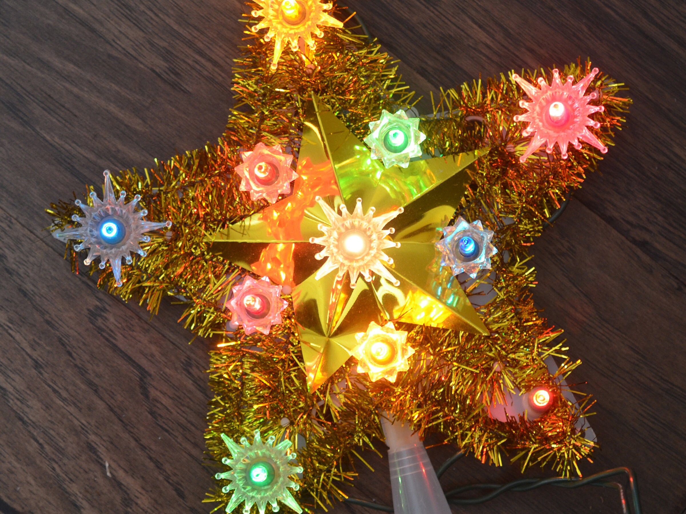 Old fashioned christmas tree star clearance, Lighted Star Tree Topper Santa Lites 80s Tinsel Star Lights - Etsy UK clearance