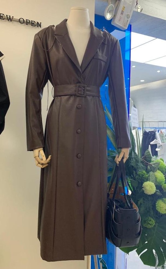 Brown pu trench coat clearance