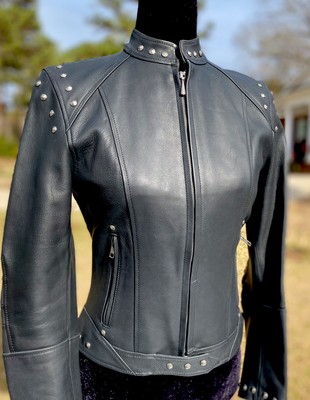 Harley davidson womens purple leather jacket clearance, Harley Davidson Women's Black Studded Leather Jacket XS Purple Eagle | eBay clearance