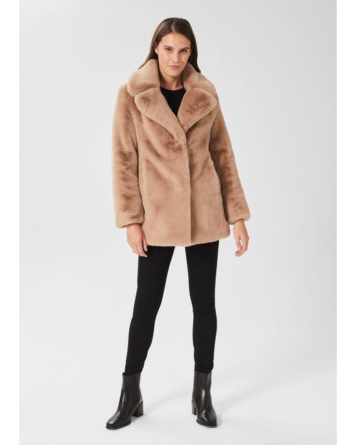 Hobbs bethany coat clearance, Hobbs Bethany Faux Fur Coat in Natural | Lyst Australia clearance