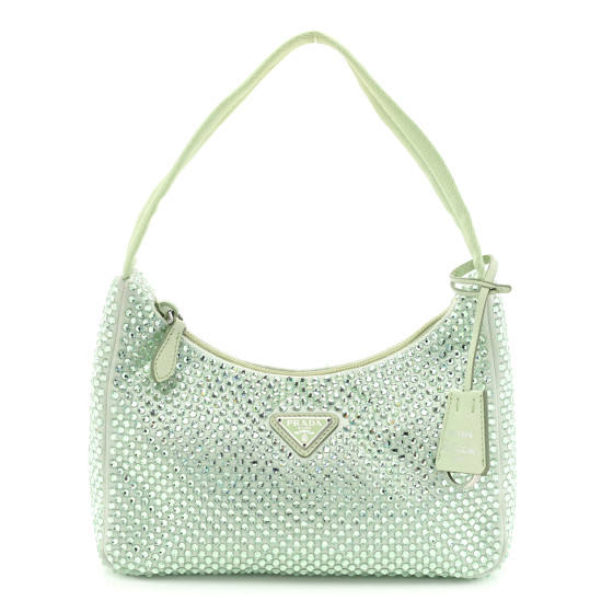 Prada white crystal bag clearance, PRADA Satin Crystal Mini Re-Edition 2000 Bag Aqua 1321932 | FASHIONPHILE clearance