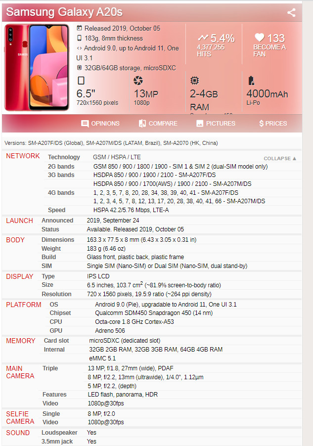 Sm a207f ds specs clearance, Dual SIM Samsung Galaxy A20s A207 SM-A207F/DS Android 64GB ROM 4GB RAM Phone | eBay clearance
