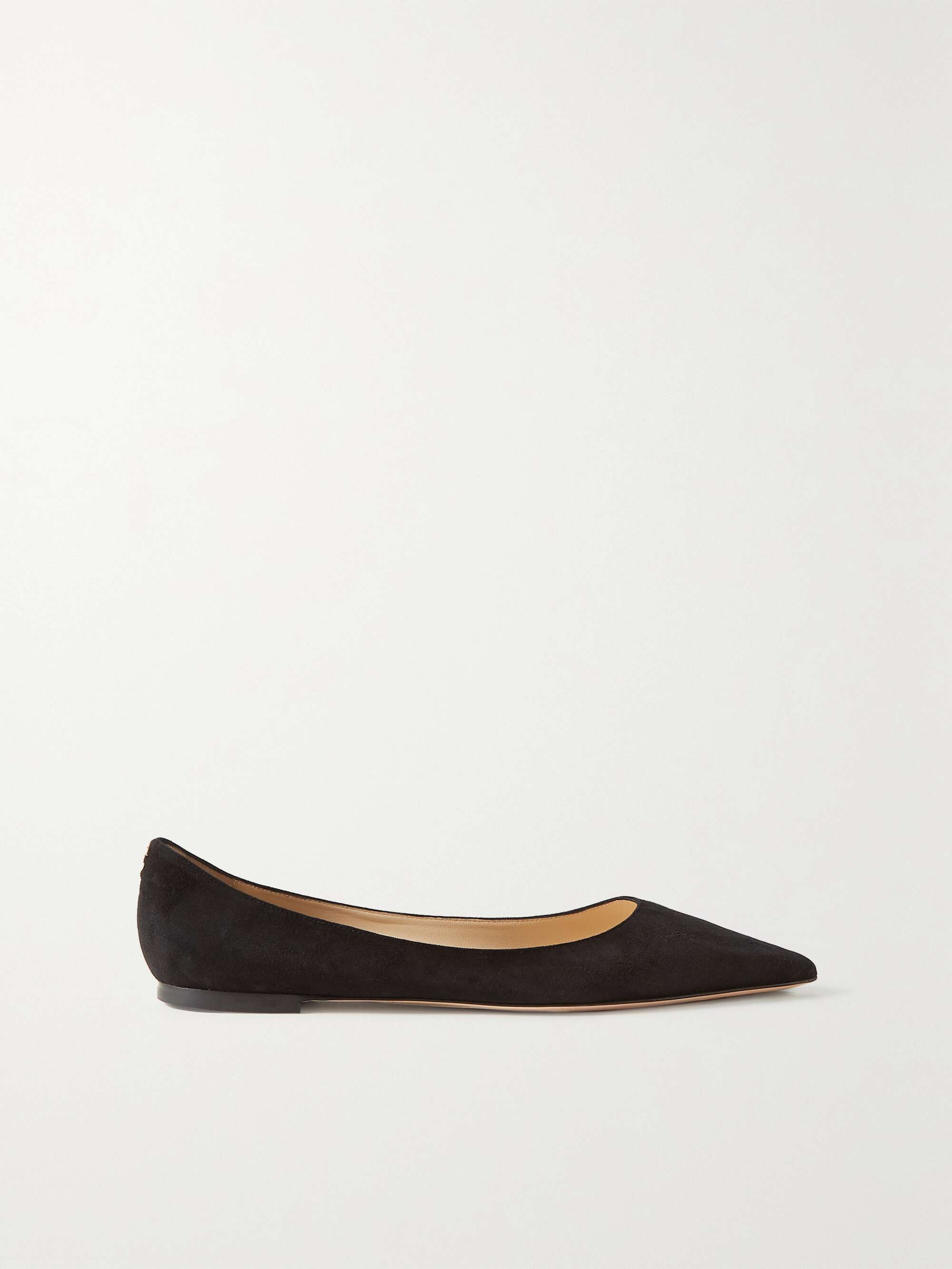 - Black suede pointed toe flats