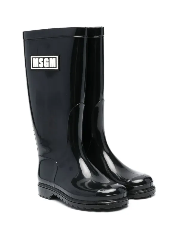 Kids knee high wellies clearance, MSGM Kids logo-patch Knee-Length Wellies - Black clearance