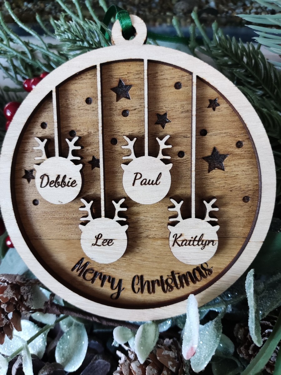 Wood christmas ornaments personalized clearance, gue Personalized Christmas Tree Ornaments,Customized 1-10 Names Wood Signs Decor (Four Names,S-2) : Amazon.co.uk: Home u0026 Kitchen clearance