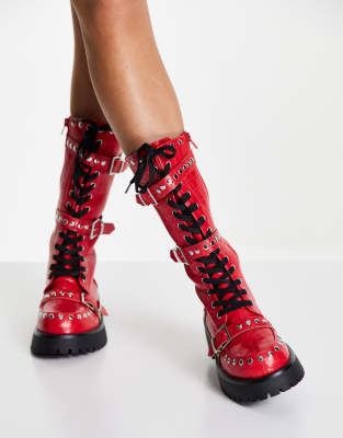 Red studded boots clearance