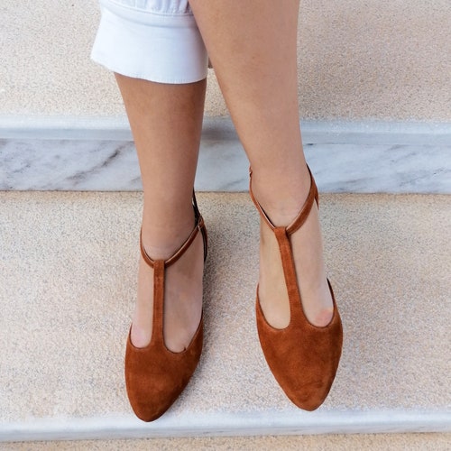 Cognac leather flats clearance