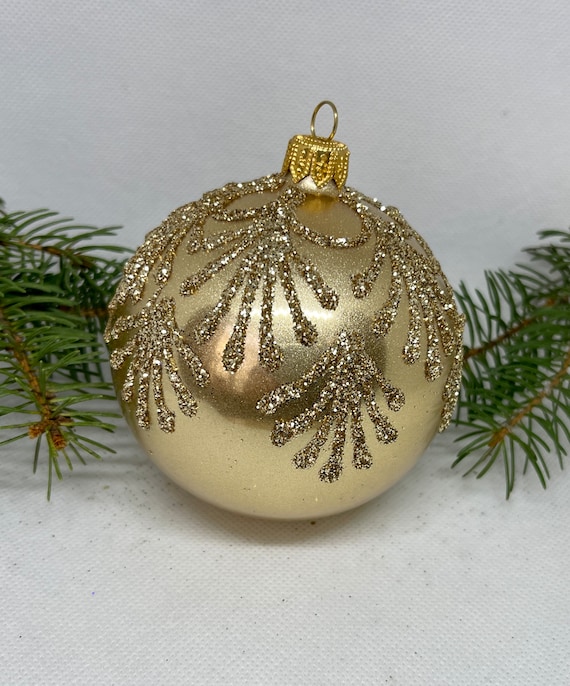 Glass glitter christmas ornaments clearance, Gold Christmas Glass Ball Glitter Xmas Ornaments Blown Glass - Etsy UK clearance