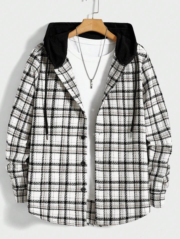 Plaid print drawstring hooded overcoat clearance, Manfinity Hypemode Men Plaid Print Drawstring Hooded Overcoat Without Tee | SHEIN EUQS clearance