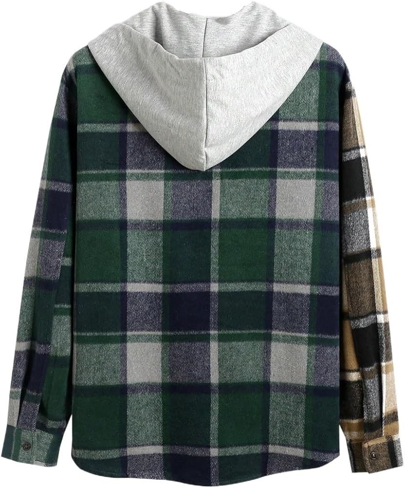 - Plaid print drawstring hooded overcoat outlet