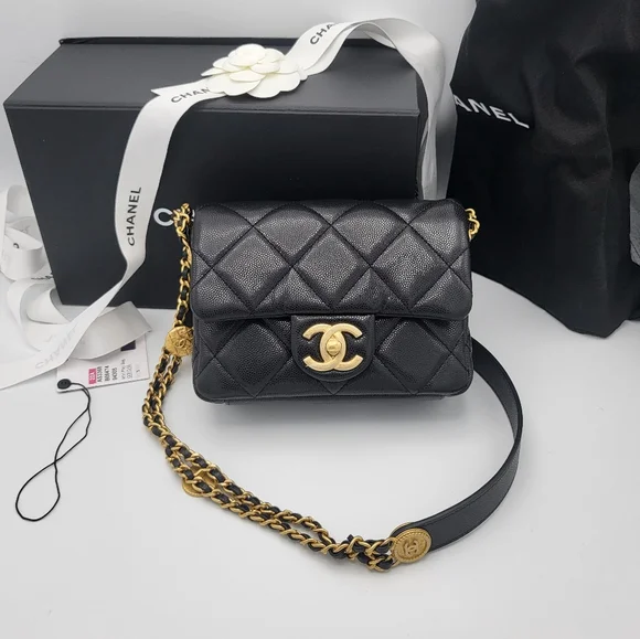 Chanel 22a flap bag clearance, CHANEL 22A Black Caviar Twist Your Buttons 21cm Mini Flap Bag Gold Har – AYAINLOVE CURATED LUXURIES clearance