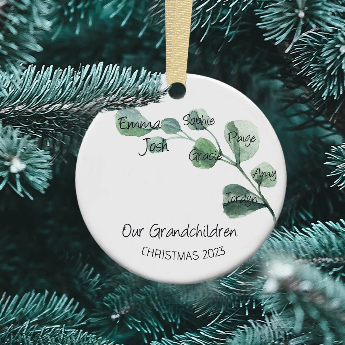 Grandchildren christmas bauble clearance, Personalised Leaves Family Christmas Tree Bauble Grandchildren Gift Grandparents | eBay clearance