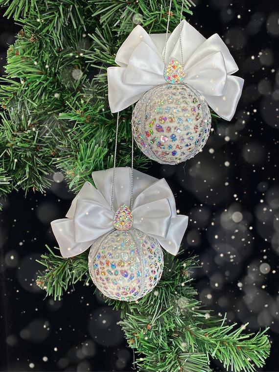 - White iridescent christmas ornaments sale