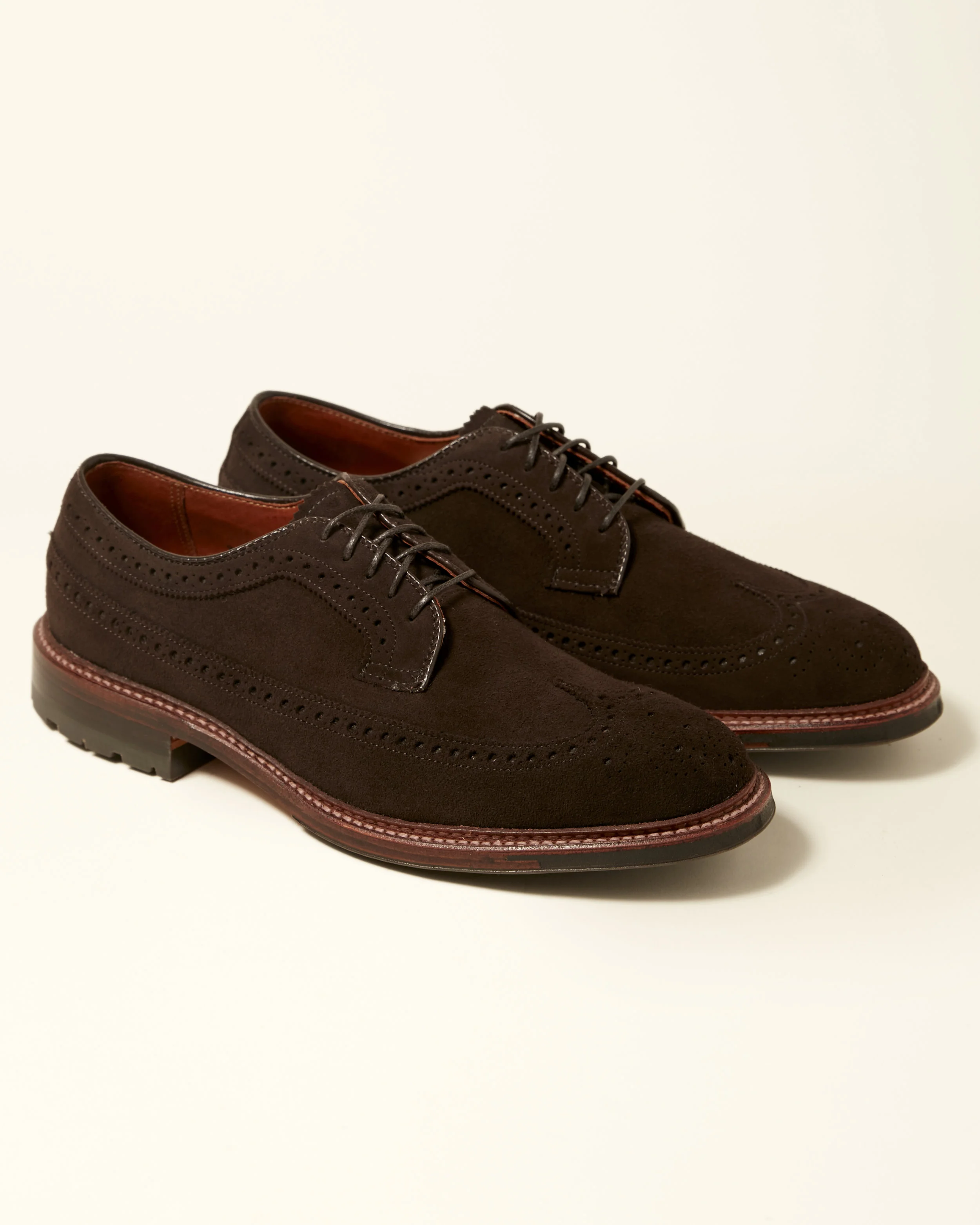 - Dark brown suede shoes