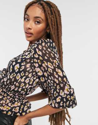 - Sheer leopard print long sleeve top shop
