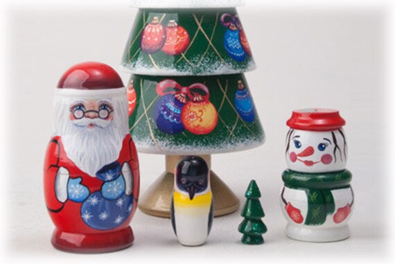 Christmas nesting dolls hallmark clearance, Handmade Painted Christmas Tree Nesting Doll 5pc 8.5 - Etsy UK clearance