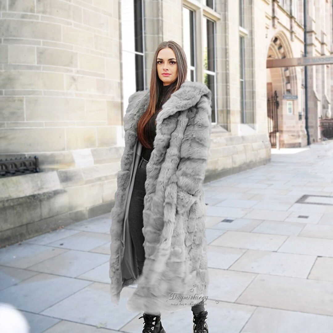 Grey fur coat long clearance