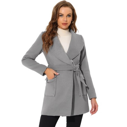 Gray wrap coat womens clearance