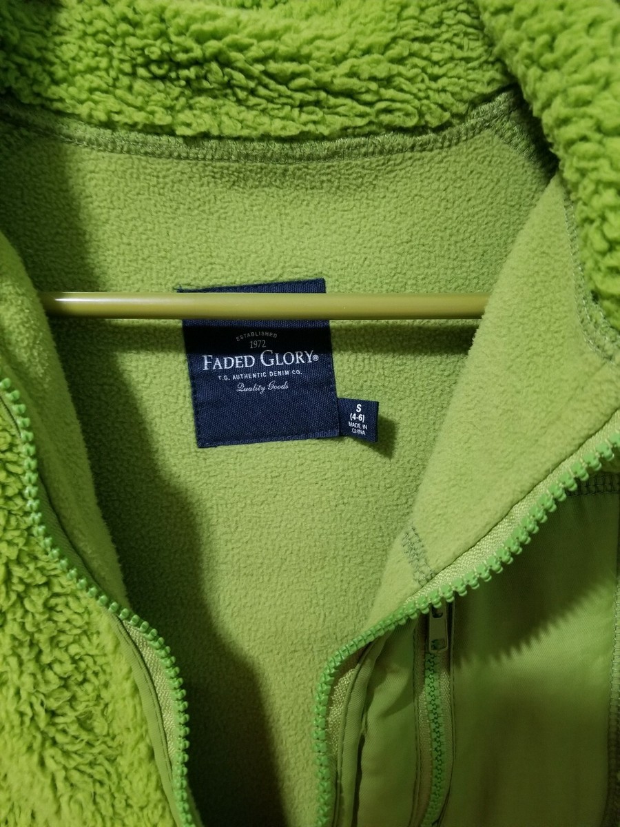 Faded glory fuzzy jacket clearance, Faded Glory FUZZY Fleece Full Zip Jacket Small 4 6 Lime Snap Pea Celery Green | eBay clearance