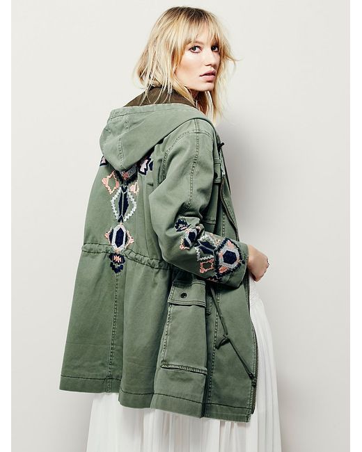 Free people army coat clearance, Free People Embellished Military Shirt Jacket in Green | Lyst clearance