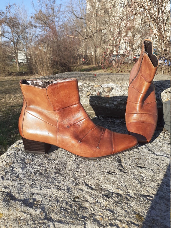 - Cognac booties low heel sold