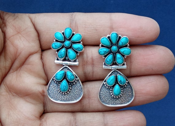 Earrings with turquoise clearance, Turquoise and Sterling Silver Detail Stud Earrings - Etsy Canada clearance