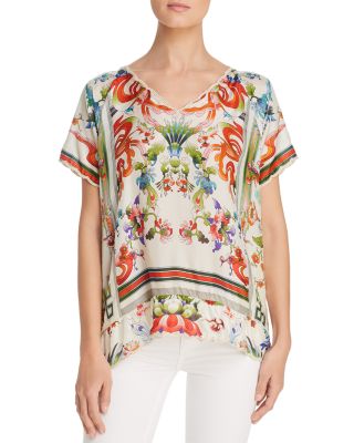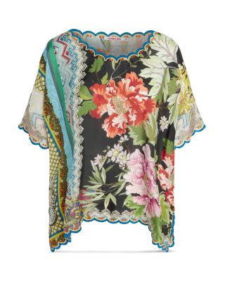 Johnny was silk top clearance, Johnny Was Loden Floral Print Silk Top clearance