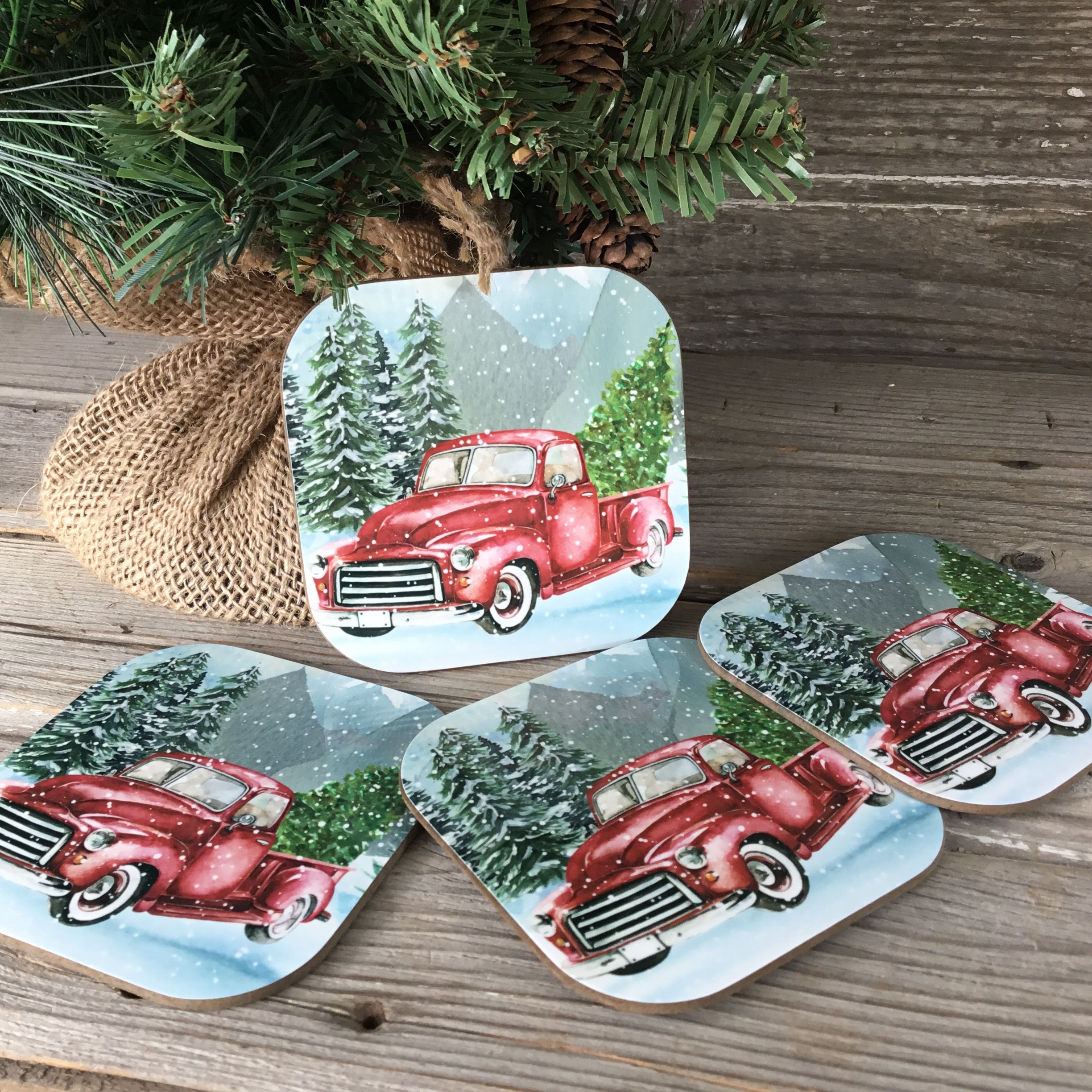 Red truck christmas coasters clearance, Red Truck Coasters - Etsy UK clearance