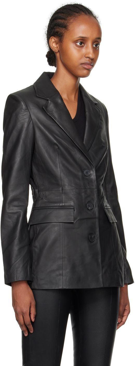 - Black fitted leather blazer outlet
