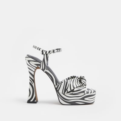 River island stilettos clearance, White zebra print knot detail platform clearance