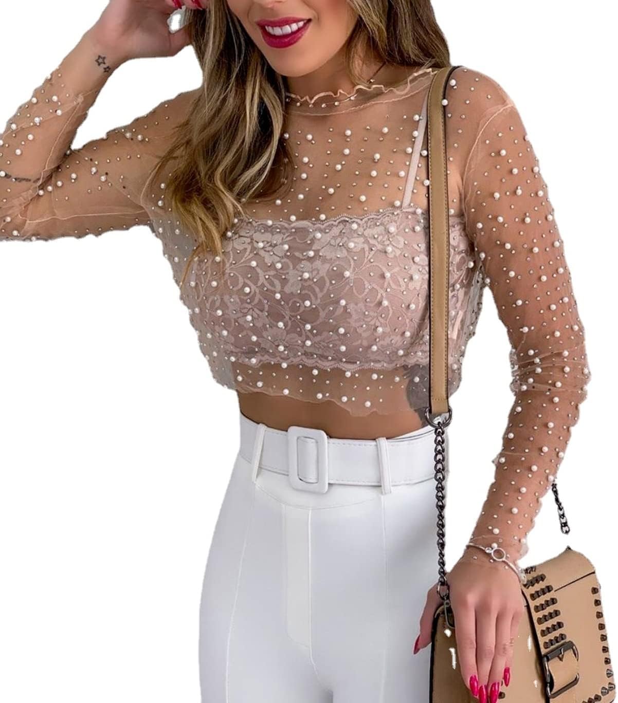 Pearl sheer top clearance, Shirt Pearl Rhinestone clearance
