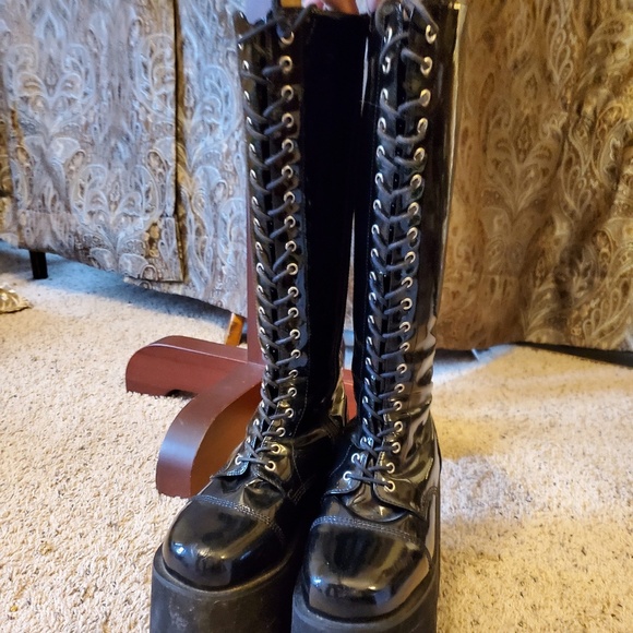 Lace up demonias clearance, Demonia 5 Kneehigh Zipup Platform Boots clearance