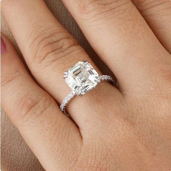 2.0 ct diamond engagement ring clearance, 2.0 CT Asscher Cut Diamond Engagement Ring, Double Claw Prong Classic Solitaire Diamond Ring, Hidden Halo Wedding Ring, 14k White Gold Ring - Etsy clearance