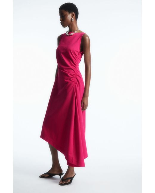 Cos dresses clearance, COS Asymmetric Gathered Midi Dress in Pink | Lyst UK clearance