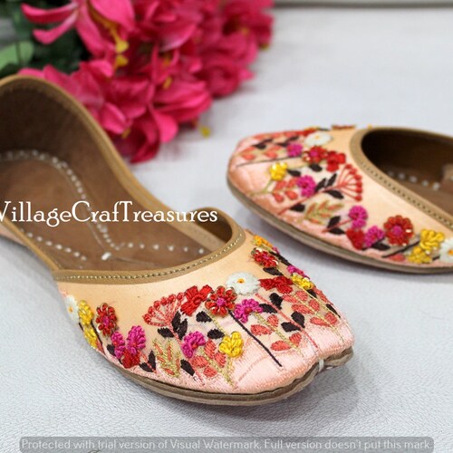 Ladies stylish jutti clearance, Ladies Peach Thread Work Punjabi Jutti Ethnic Mojari Handmade Rajasthani Juti clearance
