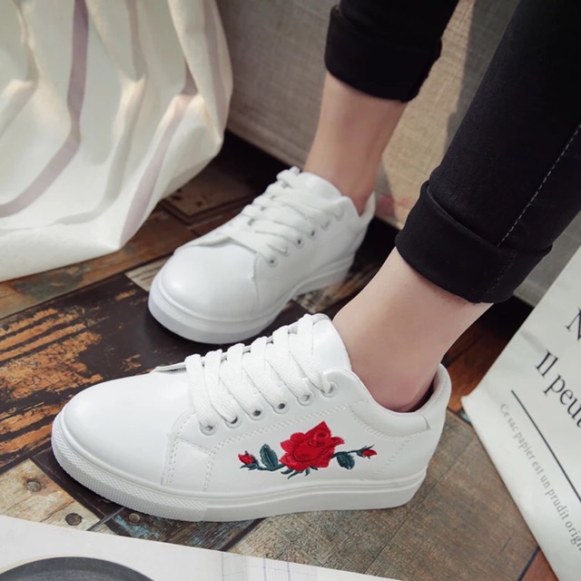 - Rose embroidered sneakers free shipping